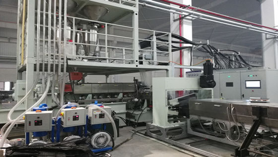 กระปุกเกียร์แรงบิดสูงสายการผลิตเทอร์โมพลาสติกคอมโพสิตเสริมเส้นใยยาวอัตโนมัติ (LFT - D) เครื่องอัดรีดสกรูคู่ขนานแบบหมุนเคาน์เตอร์ผสมความเข้มข้นแตกต่าง